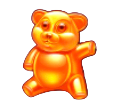 El juego presenta una cuadrícula 7×7 rodeada por una estructura que recuerda a una máquina de caramelos. El fondo es un auténtico país de dulces, con tonos rosados y nubes de azúcar que refuerzan su encanto visual. Cada símbolo —gominolas, ositos y confites— se mueve con un ligero efecto de gelatina que da vida a la pantalla.